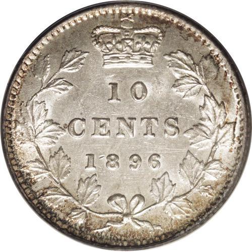 <B>Victoria 10 Cents 1896, </B></I>KM3, MS64 PCGS, intensely lustrous with beautiful multi-hued patina, particularly in the obverse legends.<BR><I>From the Dominion Collection.</B></I>