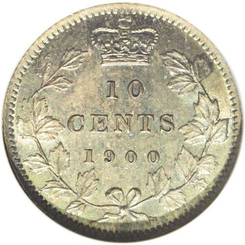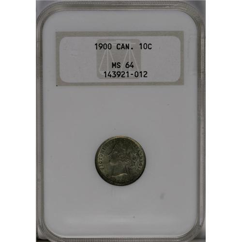 <B>Victoria 10 Cents 1900, </B></I>KM3, MS64 NGC, sharply detailed and lightly toned with blue-green and gray highlights.<BR><I>From the Dominion Collection.</B></I>