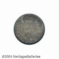 Victoria 10 cent 1875H, KM3, MS63 PCGS. A legendary issue in the Canadian series. Of the combined mintage of 1,600,000 for the 1874H and 1875H 10 cent issues, it is generally thought that only a small fraction of this amount was struck from 1875H dies. Only one piece has been certified finer by PCGS, and this is the only piece certified at the MS63 level. Important notice: Heritage usually auctions material at the rate of 200-250 lots per hour. On some occasions eBay Live bid software or the Internet may not be able to keep up with the pace of the auction. We recommend placing a realistic absentee bid now as insurance to avoid disappointment. Occasionally the auctioneer may eliminate or reject an eBay Live bid, and the auctioneer may also reopen a lot after the close of the eBay live bidding (usually because we missed an audience bid), and may reject your bid even if it shows you as the winning bidder. By bidding via eBay Live, you agree that Heritage may award the lot to another bidder at its sole discretion under the circumstances described above or any other reasonable circumstances. Also please note that all Heritage lots purchased through eBay Live carry a 20% Buyer's Premium. Please make sure you read the Terms and Conditions before you bid.