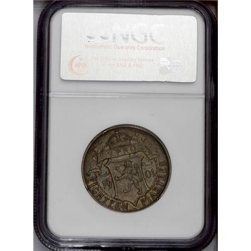Victoria 18 Piastres 1901, KM7, VF30 NGC, even slate gr