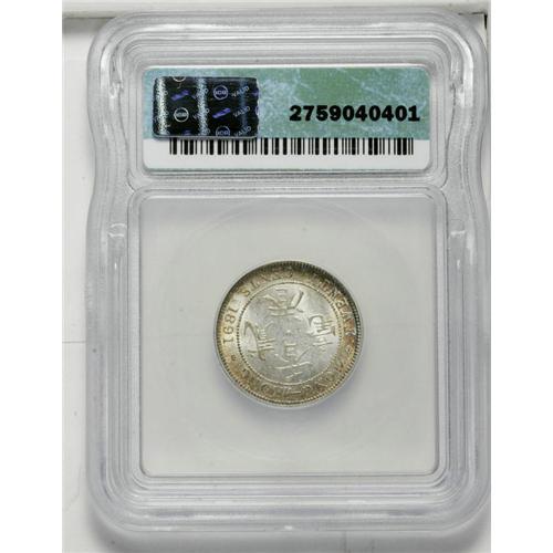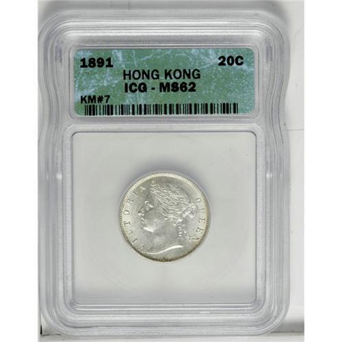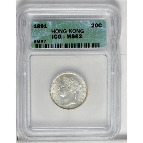 <B>Victoria 20 Cents 1891, </B></I>KM7, MS62 ICG, a nice coin with very sharp details and attractive toning, especially on the reverse.