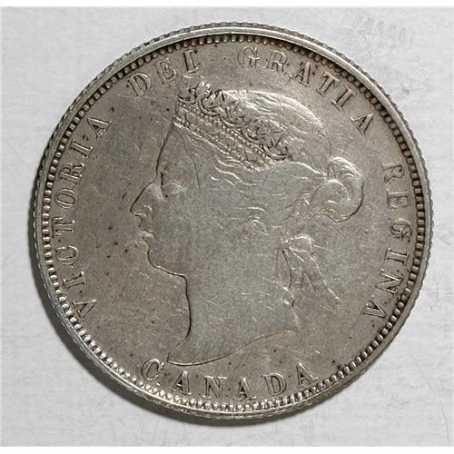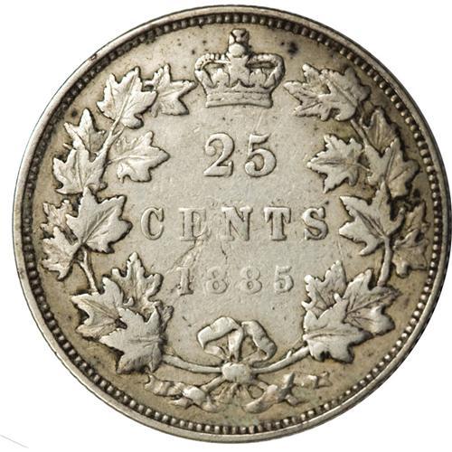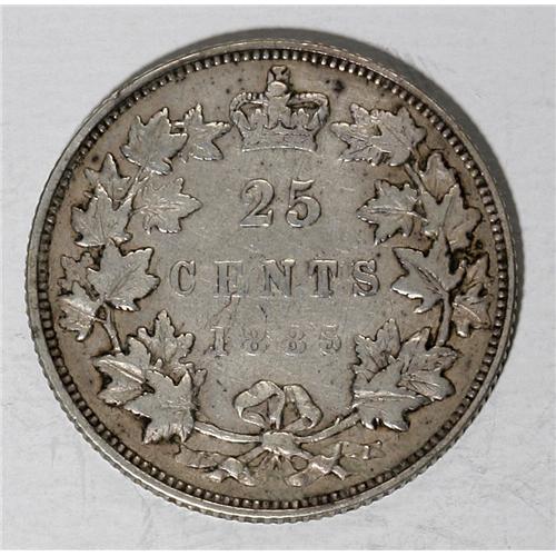 <B>Victoria 25 Cents 1885, </B></I>KM5, F-VF, tiny flan flaw on the reverse, key date.<BR><BR><b>Shipping:</b> Coin/Currency (<a target="_blank" href="http://www.heritageauctions.com/common/shipping.php">view shipping information</a>)