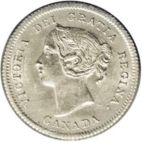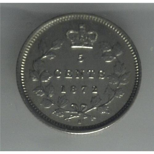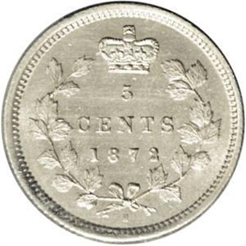 <B>Victoria 5 Cents 1872-H,</B></I> KM2, MS62 ICCS. Lustrous and brilliant-white with an exceptional appearance for a coin of this condition.<BR><I>From the Dominion Collection.</B></I>