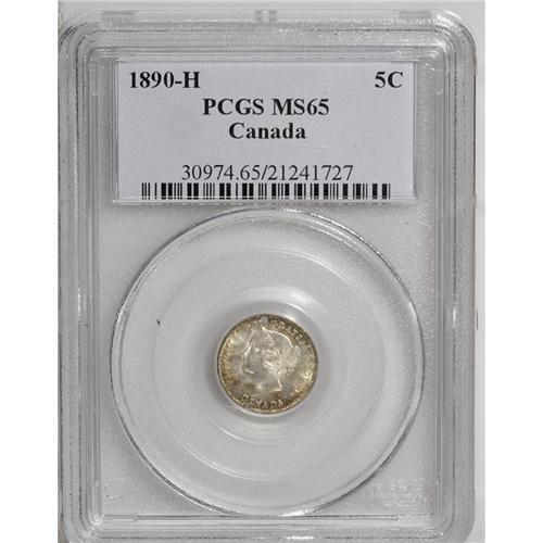 Victoria 5 Cents 1890-H, KM2, MS65 PCGS. Slightly mottl