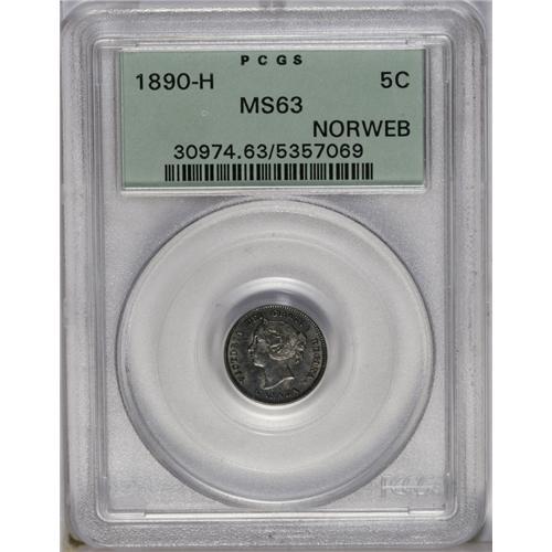 <B>Victoria 5 Cents 1890H,</B></I> Ex: Norweb Collection, KM2, MS63 PCGS. Steel-blue toning with a few minor abrasions.<BR><I>From the Dominion Collection.</B></I>
