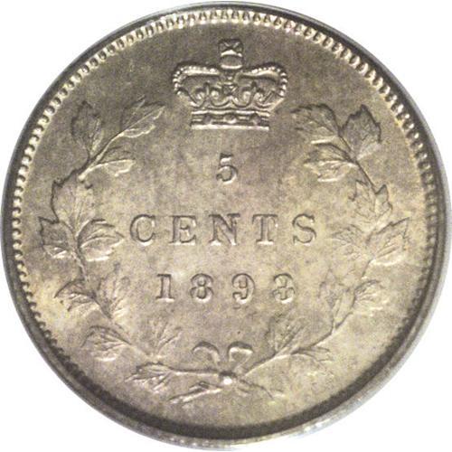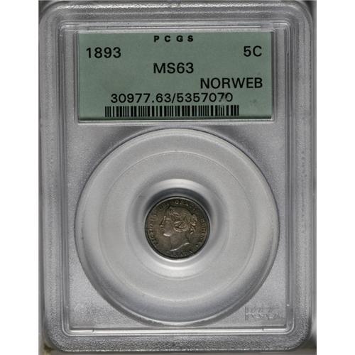 <B>Victoria 5 Cents 1893,</B></I> Ex: Norweb Collection, KM2, MS63 PCGS. Steel-gray toning with bold definition and minimally abraded surfaces for the grade.<BR><I>From the Dominion Collection.</B></I>