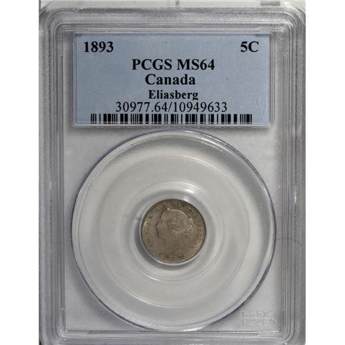Victoria 5 Cents 1893, KM2, MS64 PCGS Eliasberg, a wond