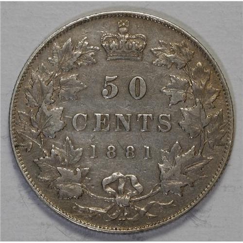 <B>Victoria 50 Cents 1881H,</B></I> KM6, XF with light scratches in the left obverse field, barely noticeable without magnification.