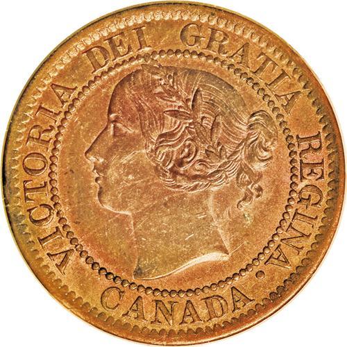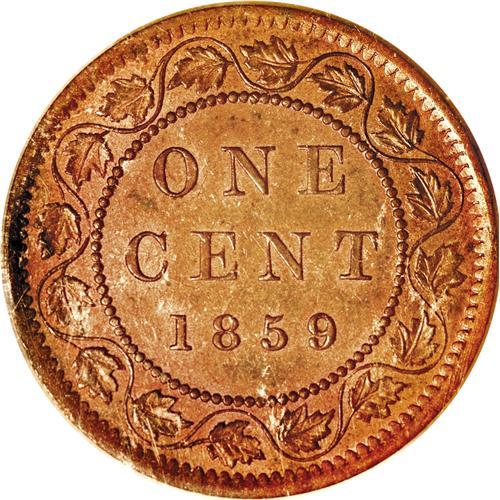 <B>Victoria Cent 1859/8 Wide 9, </B></I>KM1, MS62 RB ICCS, medal rotation, nice surfaces with some residual mint red color.