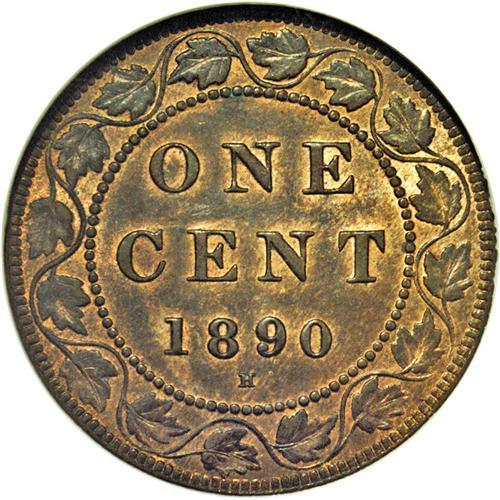 Victoria Cent 1890H, KM1, MS65 RB NGC, an extremely att