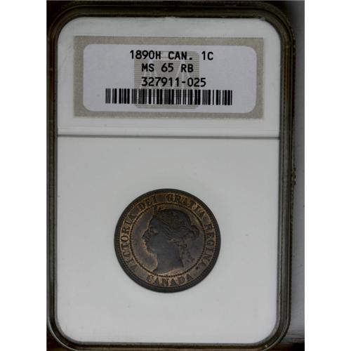 <B>Victoria Cent 1890H, </B></I>KM1, MS65 RB NGC, an extremely attractive coin with beautifully balanced luster and glossy brown surfaces.