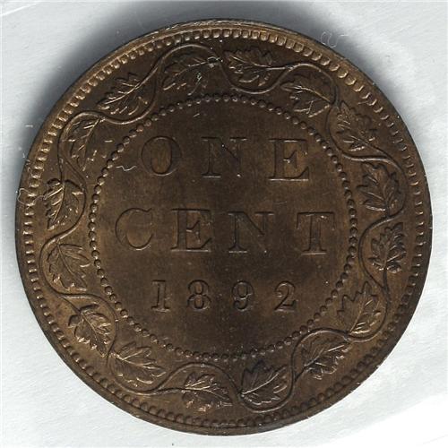 Victoria Cent 1892, KM1, MS63 RB ICCS, obverse 4, very