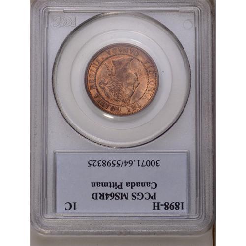 <B>Victoria Cent 1898H, </B></I>KM1, MS64 RD PCGS, Ex: Pittman, an intensely lustrous coin which is decidedly rare when certified as fully Red.<BR><I>From the Dominion Collection.</B></I>