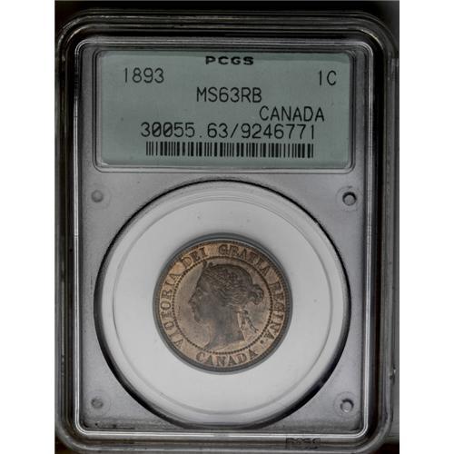 Victoria Cent - Choice Pair, KM1, 1893 MS63 RB PCGS, ve