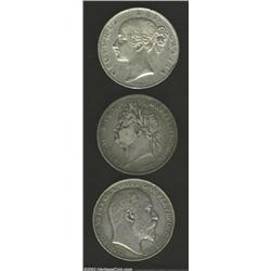 Victoria Crown 1845, KM741, plus Crowns 1822 F-VF Rim Bumps and 1902 VF-XF. 3 coins Important notice