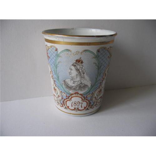Scarce tin and enamel commemorative cup made in honor of Queen Victoria's Diamond Jubilee in 1897.