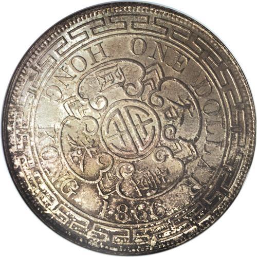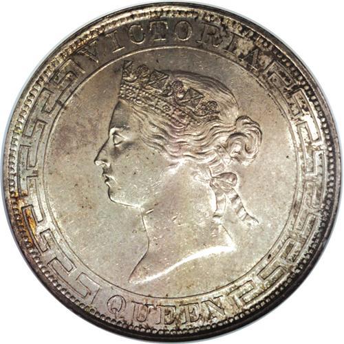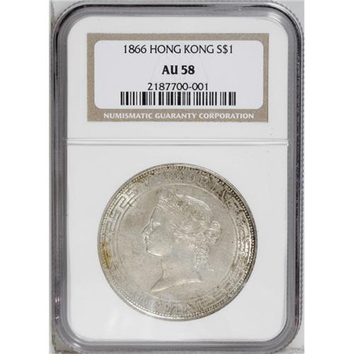 <B>Victoria Dollar 1866, </B></I>KM10, AU58 NGC, a choice example with light and extremely attractive toning and full mint brilliance. The obverse exhibits some typical small contact marks, but this coin is nearly Mint State and very rare as such.