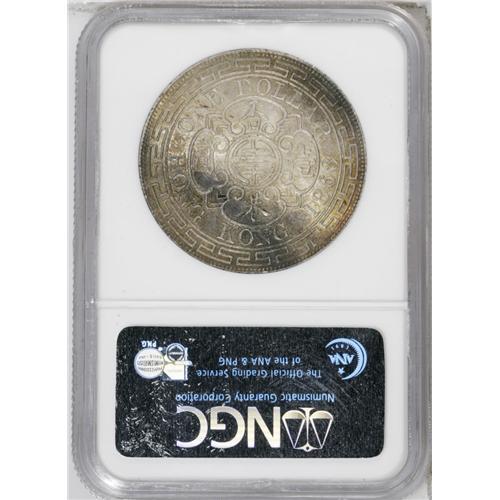 <B>Victoria Dollar 1868, </B></I>KM10, AU55 NGC, an appealing example with light original multi-hued patina and obvious underlying mint luster. The obverse surfaces display some typical contact marks, but there is very little wear evident on the high points of the bust. Rare and very attractive grade for this type.