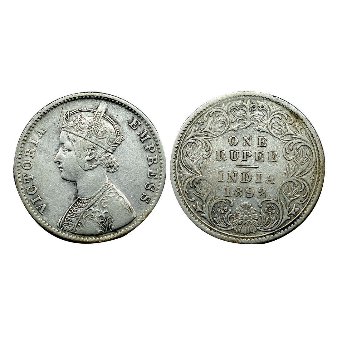 Victoria Empress, 1892, Silver Rupee, Calcutta Mint.