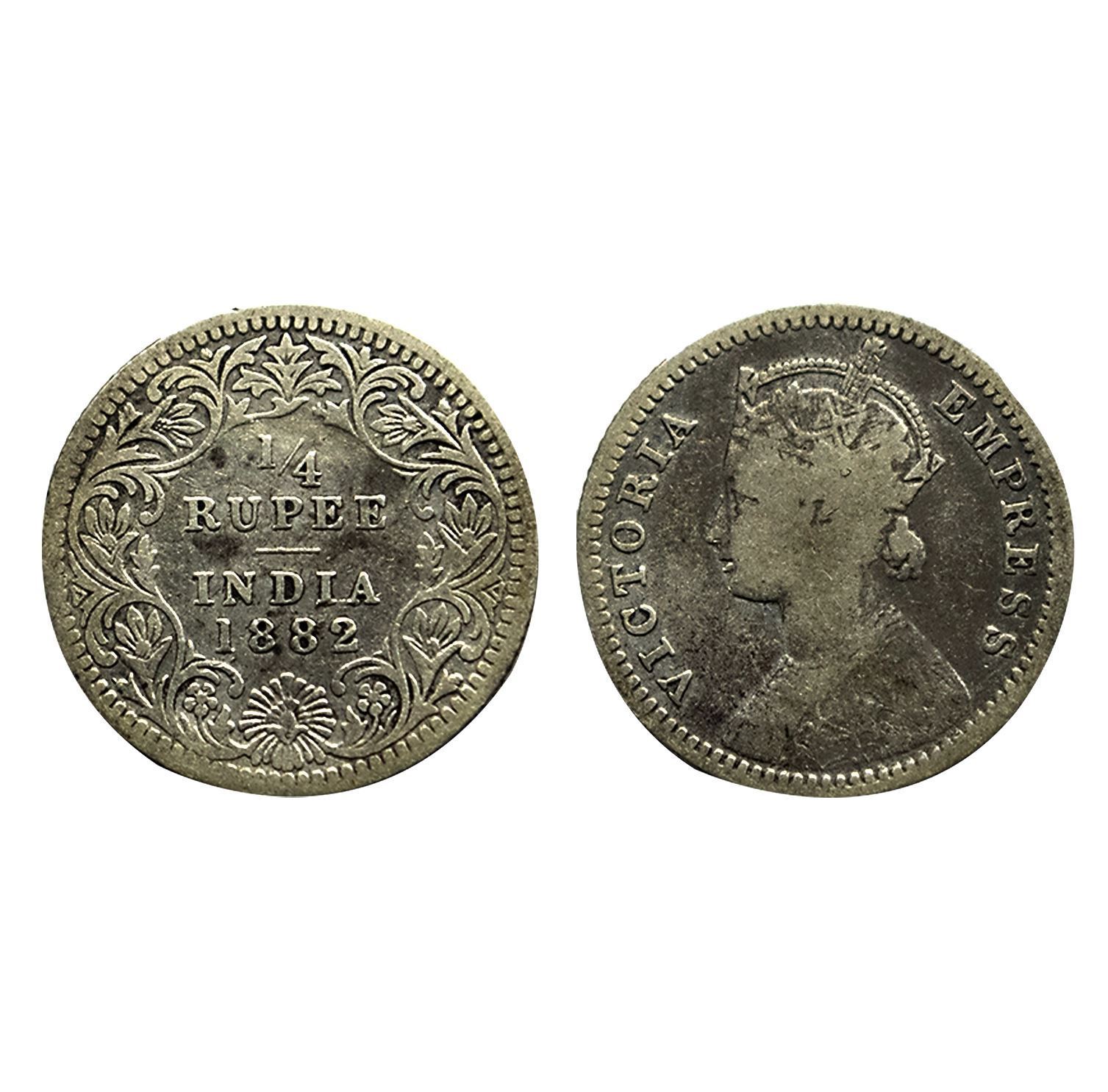 Victoria Empress, Silver 1/4 Rupee, 1882, Calcutta Mint, Fine, Scarce.