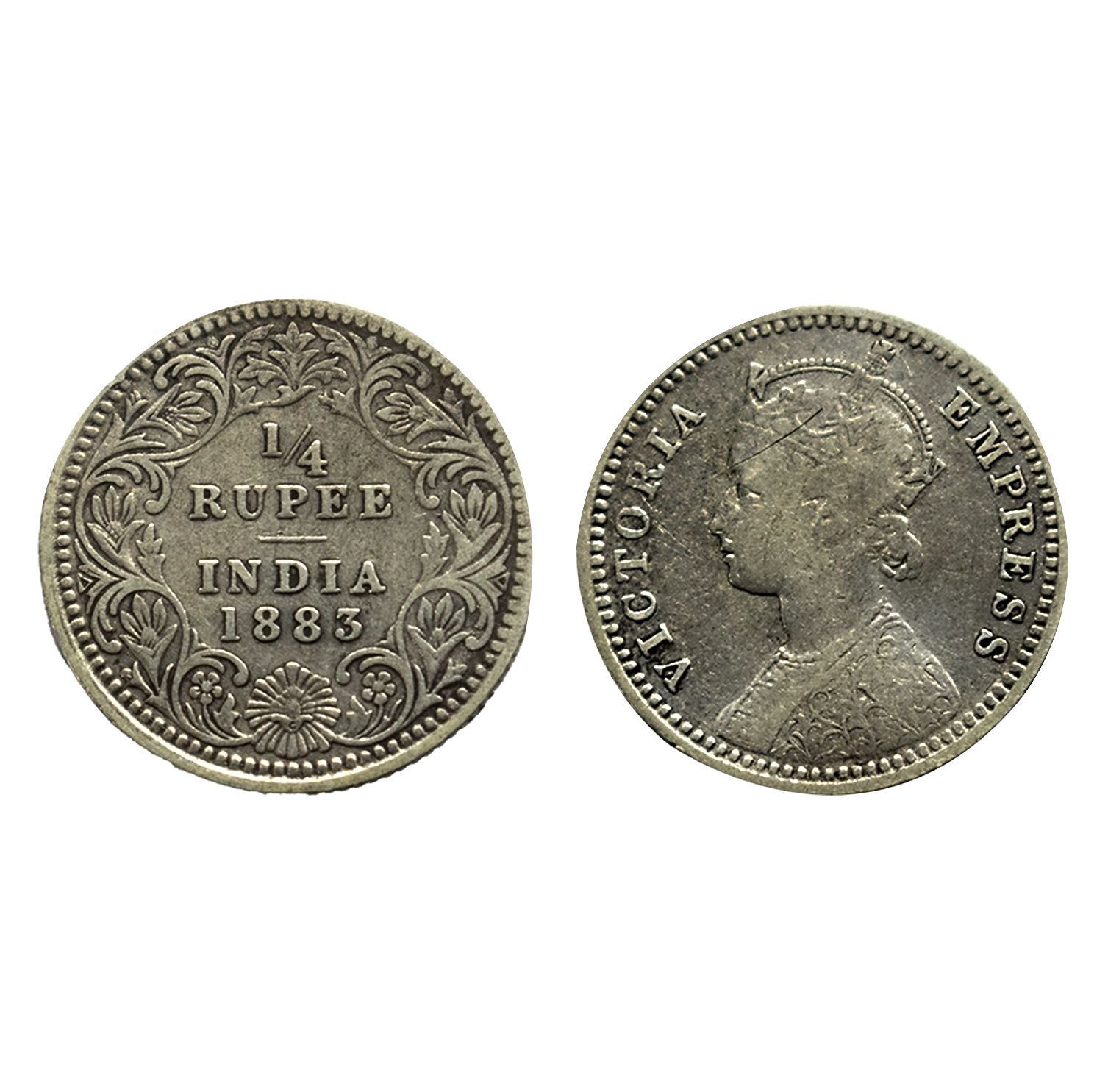 Victoria Empress,Silver 1/4 Rupee, 1883, Calcutta Mint, Fine, Scarce.