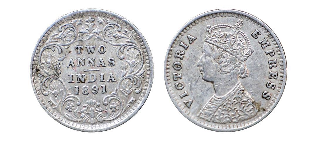 Victoria Empress, Silver 2 Annas, 1891, Calcutta Mint, B / II / C incuse (Prid 506).