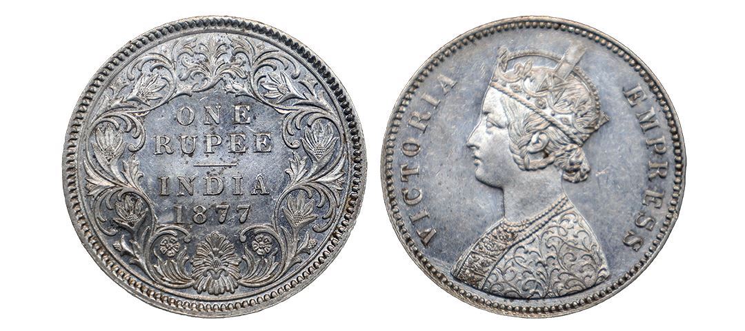 Victoria Empress, Silver Rupee,1877, Calcutta Mint,