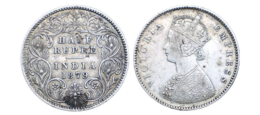 Victoria Empress, Silver ½ Rupee, 1879, Calcutta Mint, A / I / C incuse (Prid 263). Very Fine, Very Rare.