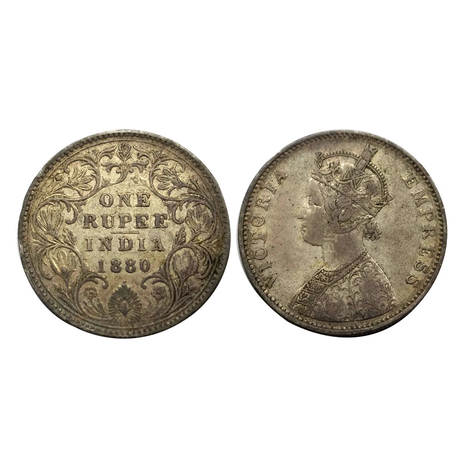 Victoria Empress, Silver Rupee, 1880,Obv. A/ Rev. II, Bombay Mint dot,