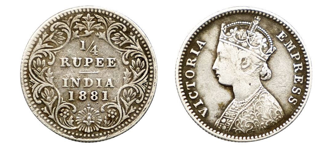 Victoria Empress, Silver ¼ Rupee, 1881, Bombay Mint, C / II / dot, Unlisted in Pridmore,