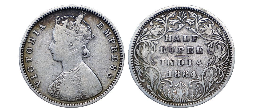 Victoria Empress, Silver ½ Rupee, 1884, Bombay Mint, A / II / dot, (Prid 292).