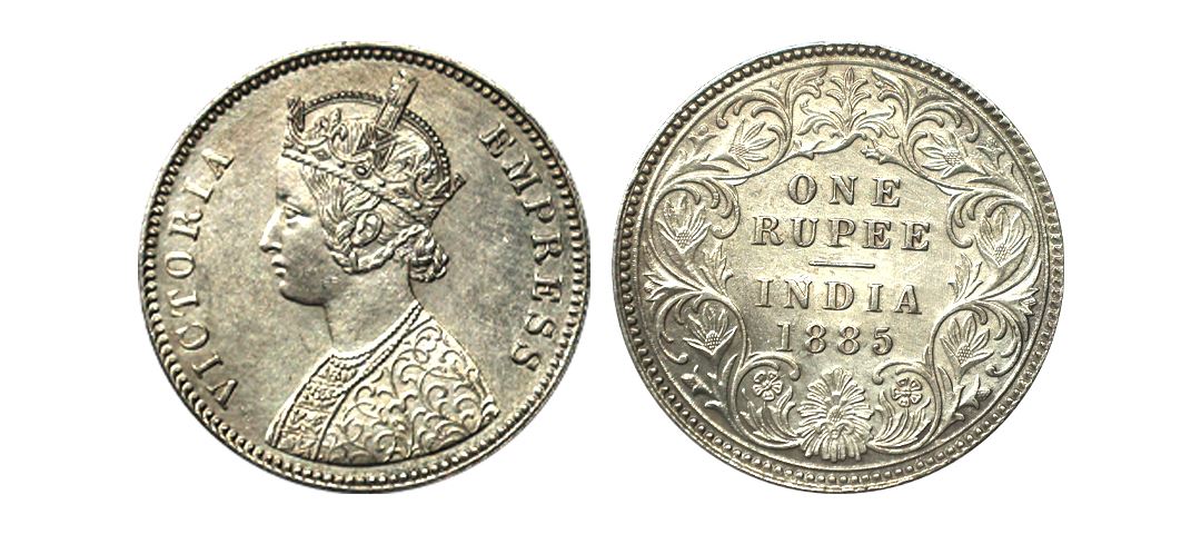 Victoria Empress, Silver Rupee, 1885, A1/I, c incuse, about uncirculated, very scarce.