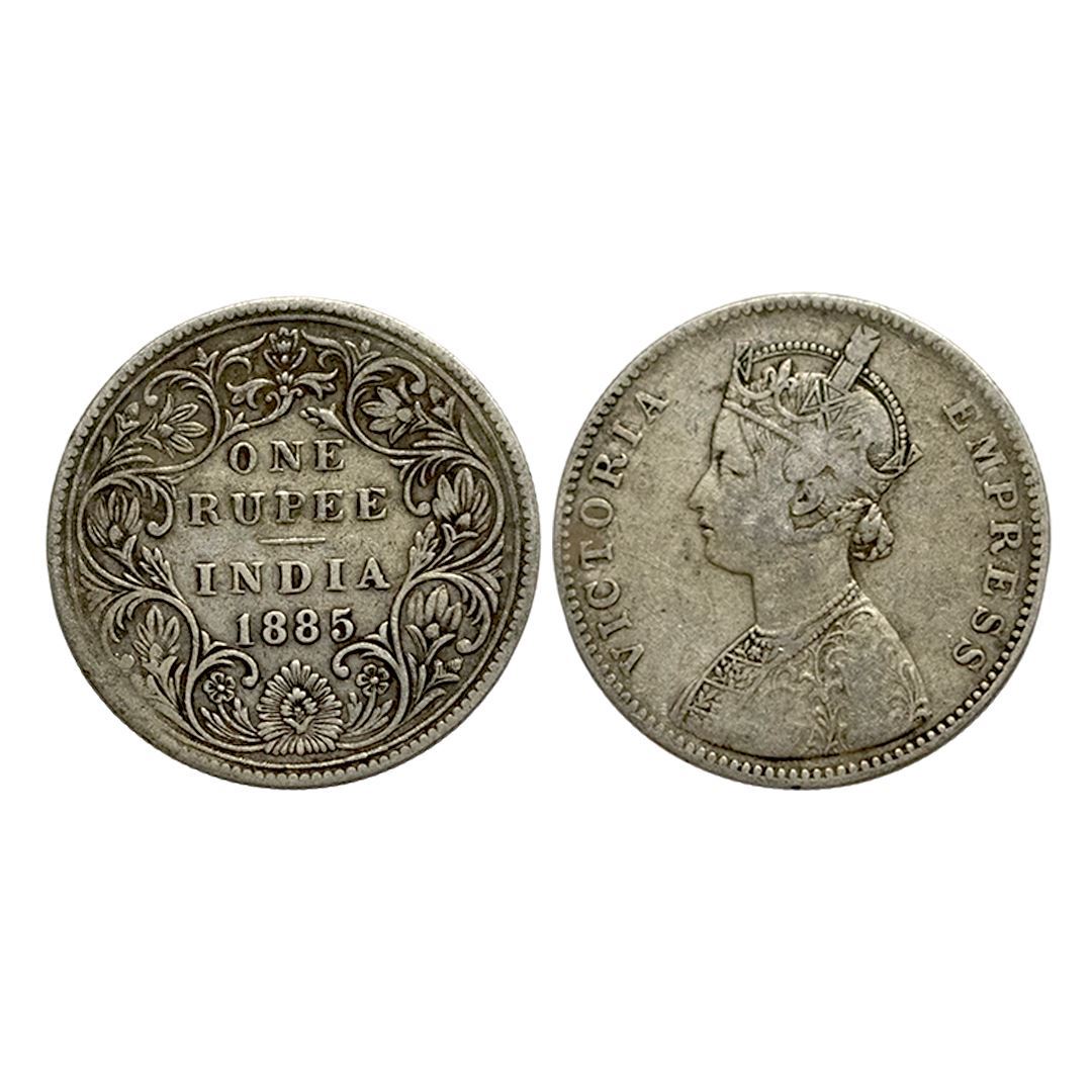 Victoria Empress, Silver Rupee, 1885, top and bottom b raised, Bombay Mint, Fine, Scarce.