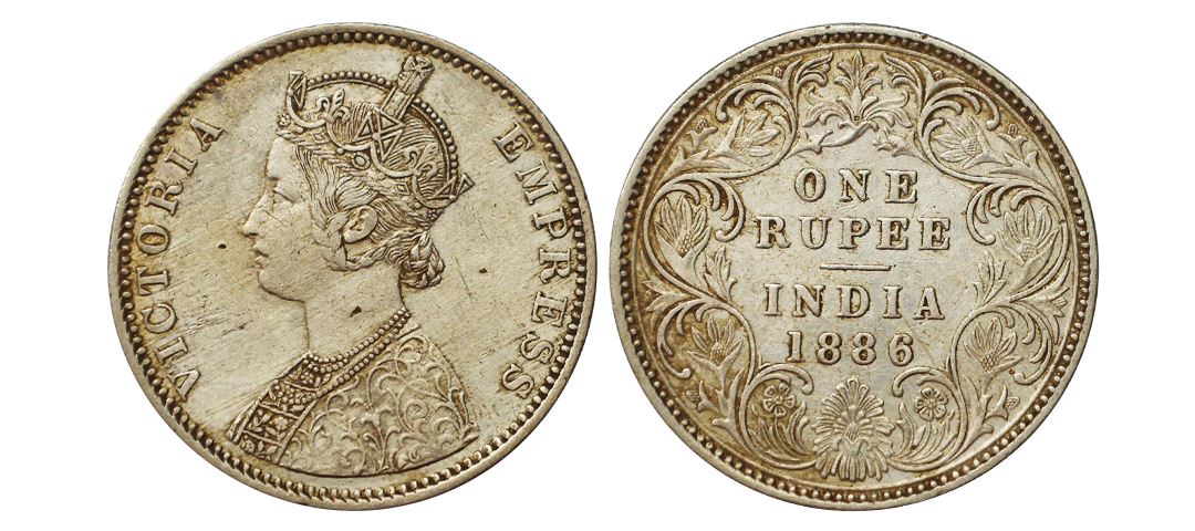 Victoria Empress, Silver Rupee,1886/5 overdate rupee, C2/ I, B incuse at top