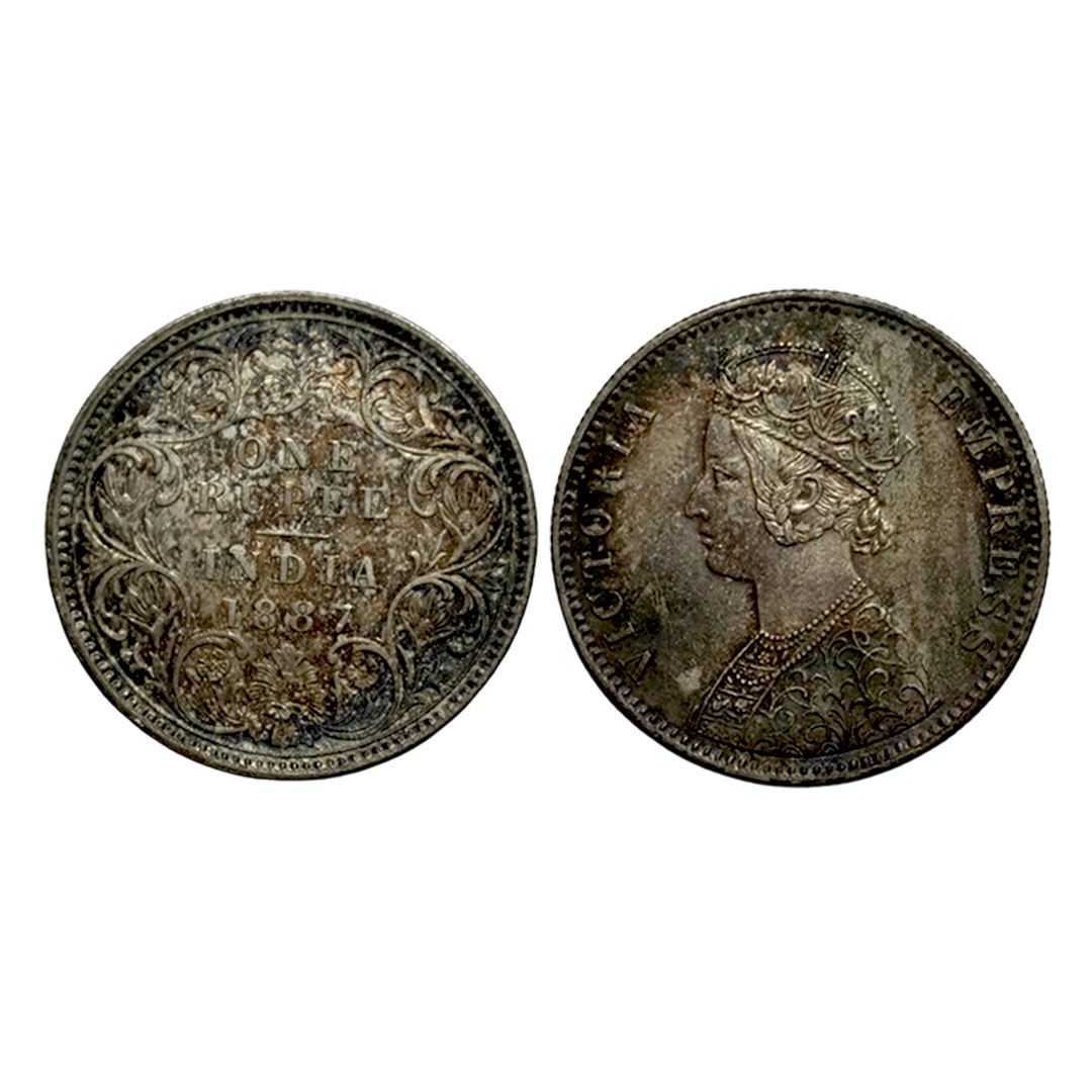 Victoria Empress, Silver Rupee, 1887, C3/I/C incused, Calcutta Mint, Toned, Extremely FIne+, Scarce.