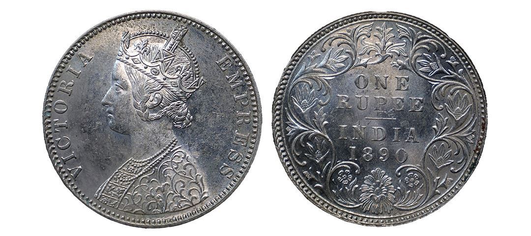 Victoria Empress, Silver Rupee, 1890, Bombay Mint, C2 / I / B incuse.