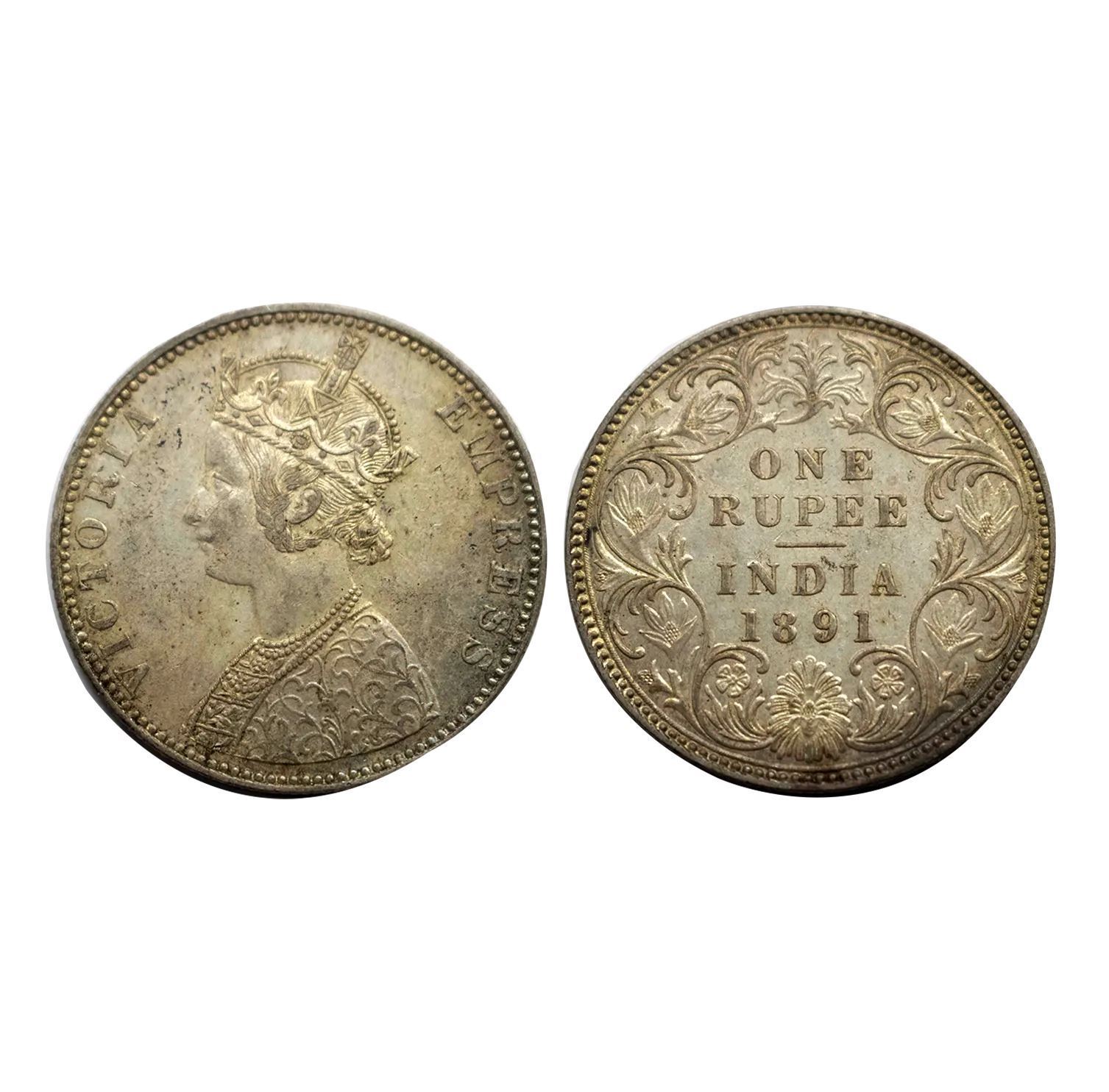 Victoria Empress, Silver Rupee, 1891,Obv. A/ Rev. I, Bombay Mint "B" Incuse, About Extremely Fine.