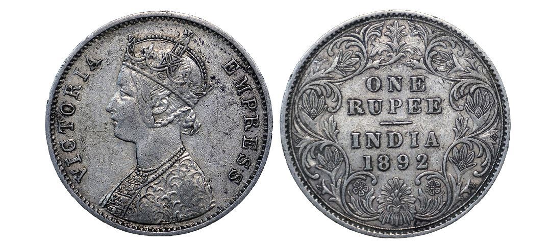 Victoria Empress, Silver Rupee, 1892, Bombay Mint, C4 / I / B incuse; This obverse was first used in 1885 for both calcutta and bombay mints, but from 1887 it was only used for bombay mints and was used for 1887,1888 years and then discontinued and then only again used in 1892 and only a few specimens are known for 1892, extremely rare.