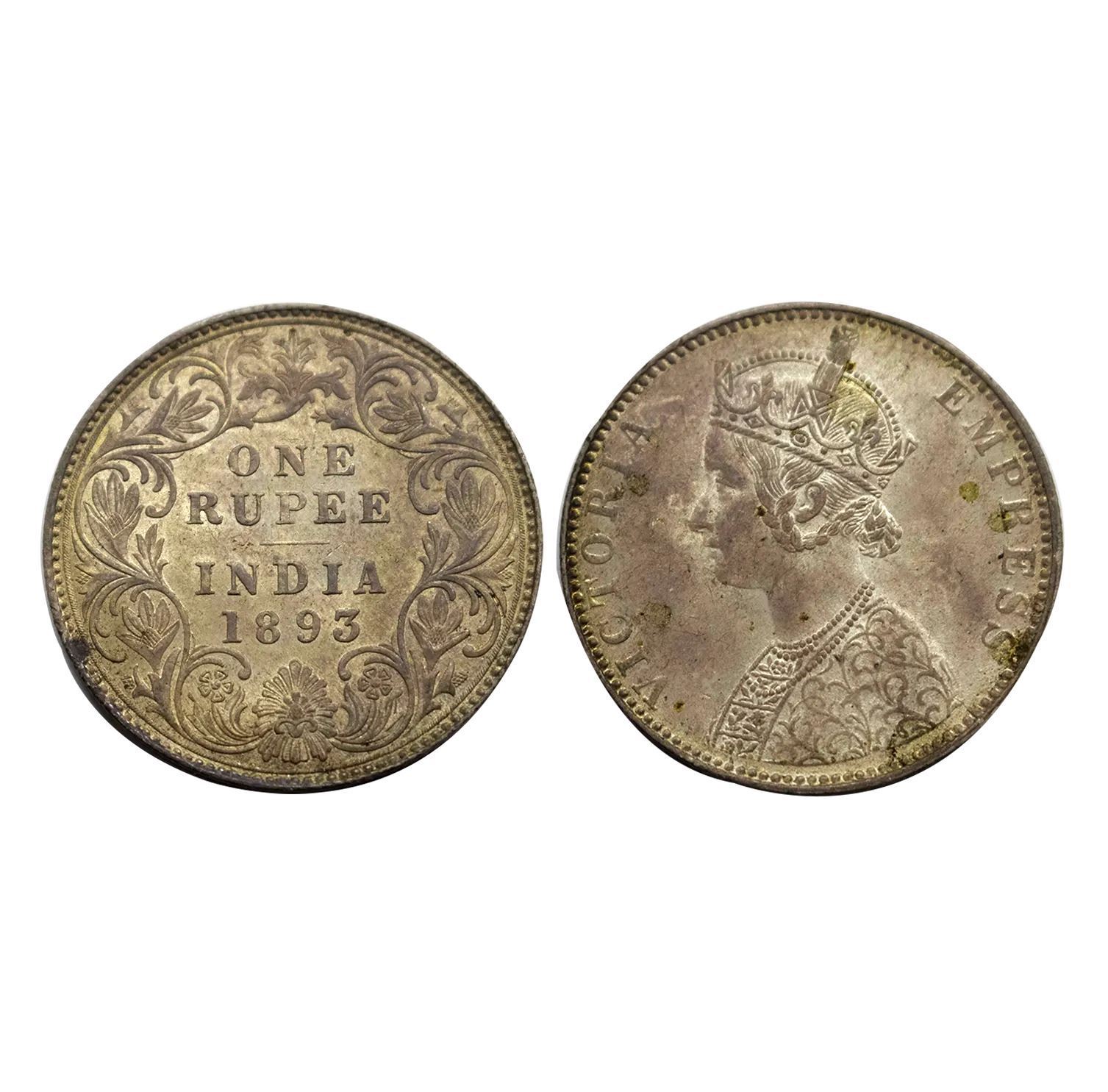 Victoria Empress, Silver Rupee, 1893,Obv. A/ Rev. I, Bombay Mint "B" Incuse,