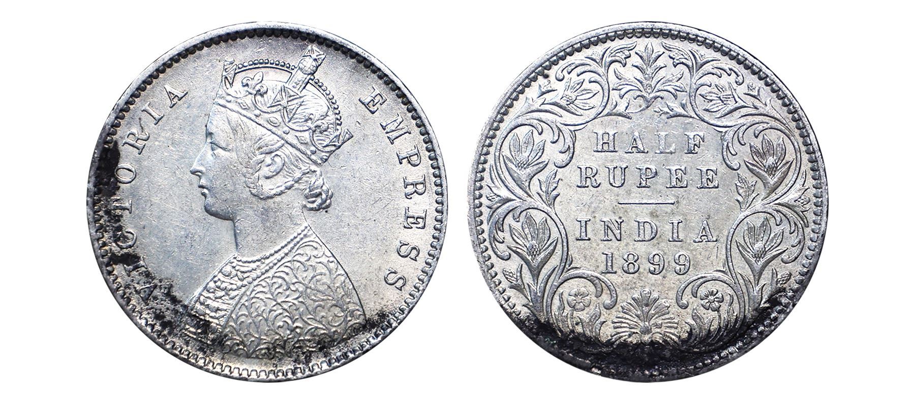Victoria Empress, Silver ½ Rupee, 1899, Bombay Mint, B incuse, Inverted ‘B’ (Prid