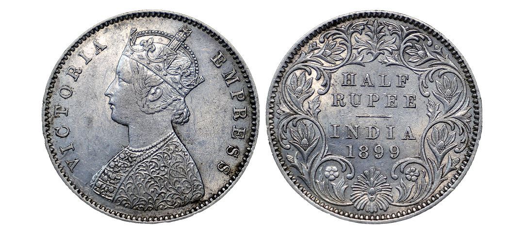 Victoria Empress, Silver ½ Rupee, 1899, Calcutta Mint, A / I / C incuse (Prid 282).