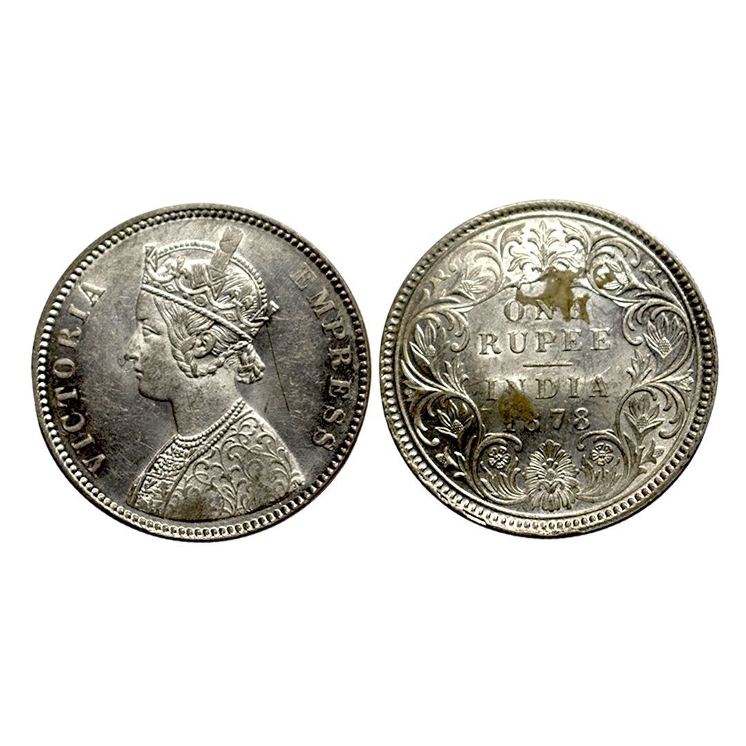 Victoria Empress, Silver Rupee, 1878, No Dot, Calcutta MInt, About Uncirculated, Rare.