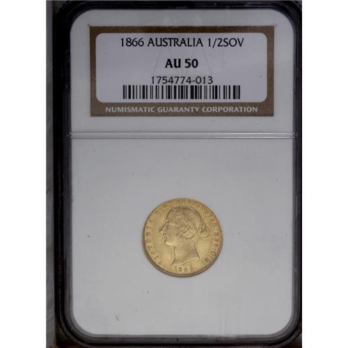 Victoria Gold 1/2 Sovereign 1866, KM3, AU50 NGC. Well s Victoria Gold 1/2 Sovereign 1866,