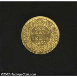 Victoria Gold 1 Mohur 1877, KM496, XF, dulled by an old cleaning. First year of the young head type.