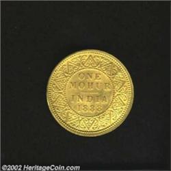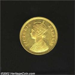 Victoria Gold 1 Mohur 1888, KM496, XF/AU, faint scratch in front of the portrait. Important notice: We expect to be auctioning lots at the rate of 200-250 per hour. Sometimes eBay Premier live bid software cannot keep up with that pace, so we strongly recommend that you place a realistic proxy bid now as insurance to avoid disappointment. Also please note that all Heritage/CAA lots purchased through eBay Premier carry a 20% Buyer's Premium. Please make sure you read the Terms and Conditions.