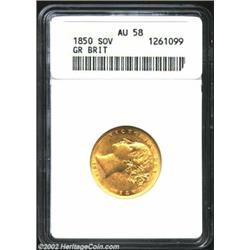 Victoria Gold Sovereign 1850, KM736.1, AU58 ANACS. An attractive example with a particularly choice.