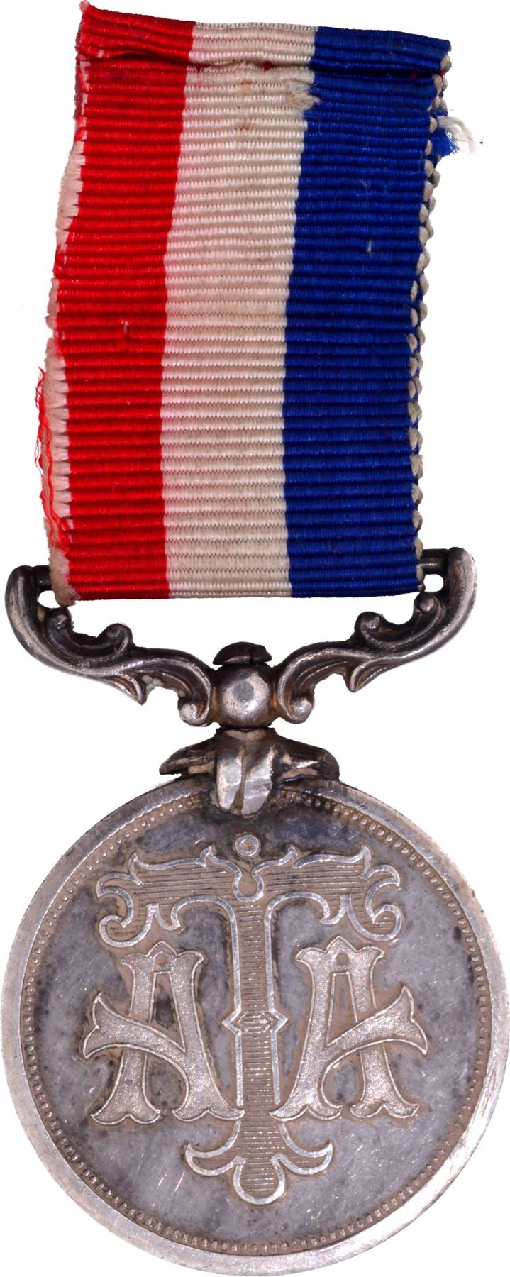 British India, 1897, British Army Temperance Association, Victoria Queen Golden Jubilee (1837-1897), Silver Medal, Unnamed, Obv: bust of Queen Victoria facing left, legend "IN COMMEMORATION 1837-1897" around, Rev: ATA (Army Temperance Association) logo, plain edge, bar with ribbon, 13.25g, 25.01mm, superb quality, about extremely fine, Rare.