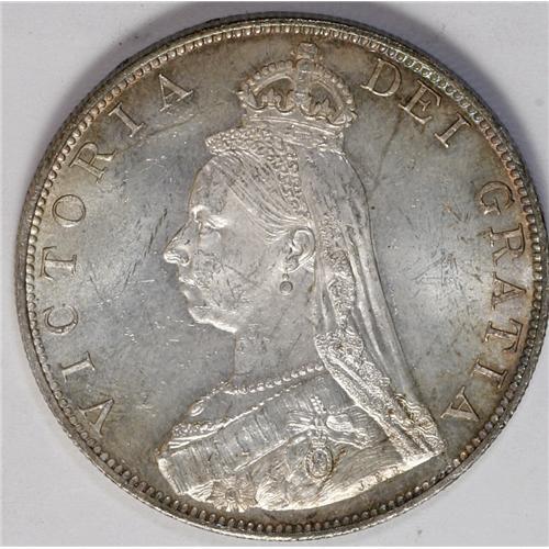 <B>Victoria Jubilee Double-Florin 1887,</B></I> S-3922, Roman I in date, UNC. Fully lustrous and lightly toned.