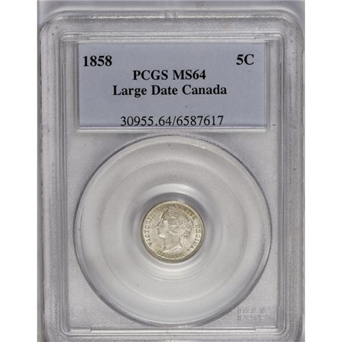 Victoria Large Date/Small Date 5 Cents 1858, KM2, MS64