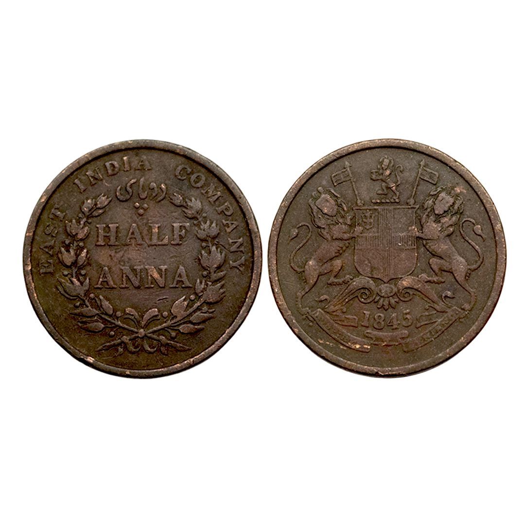 Victoria Queen, Copper Half Anna, 1845,